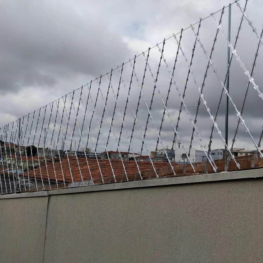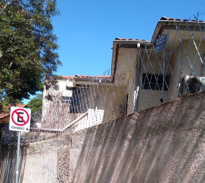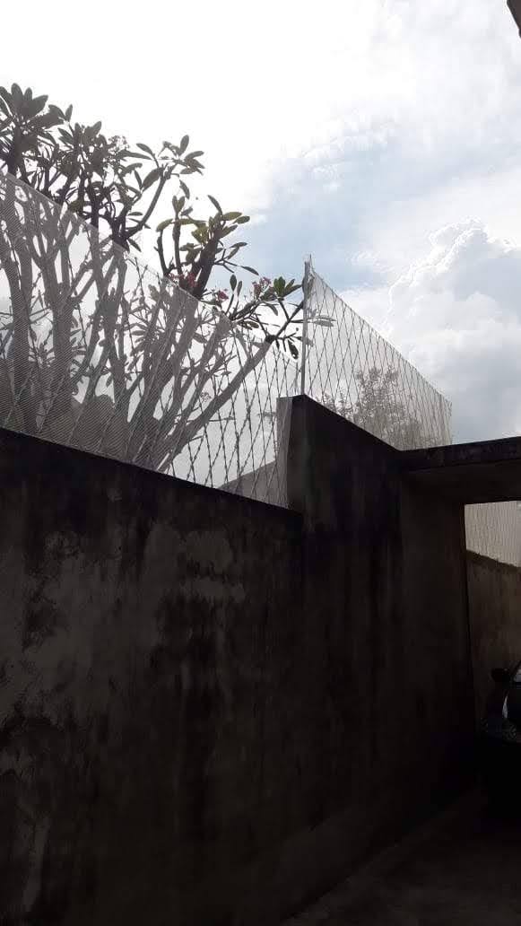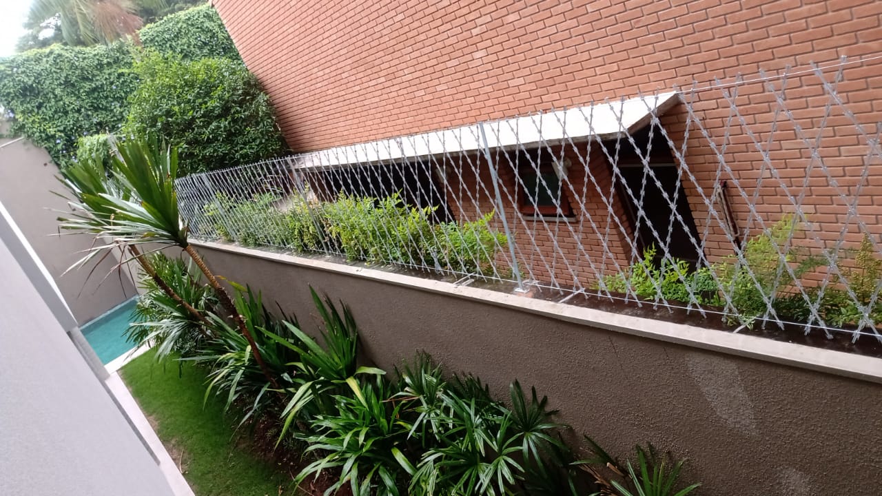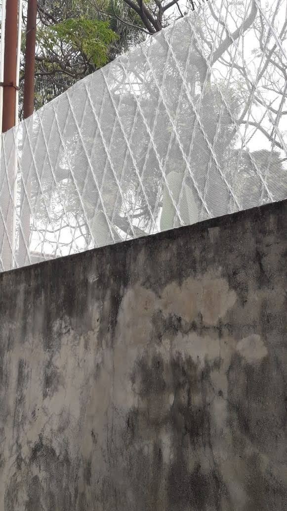 A rede laminada é indicada para locais onde é necessario a proteção vertical com alturas maiores e não somente a superficie do topo do muro.